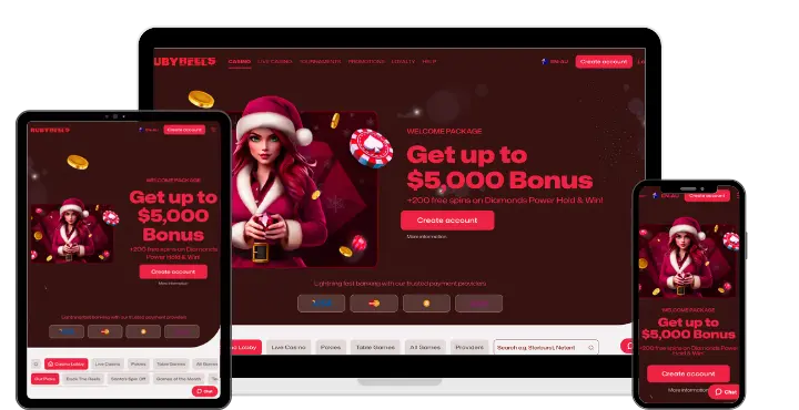 Through your preferred browser on mobile, you’ll be able to instantly sign up, login, make deposits, claim bonuses, play any of our over 4,000 mobile-optimised games, and make withdrawals. On mobile, you’ll be welcomed with a matched deposit offer of up to A$5,000 + 200 FS. Other reload perks are available to returning players via the casino Ruby Reels mobile app weekly on promo days.
