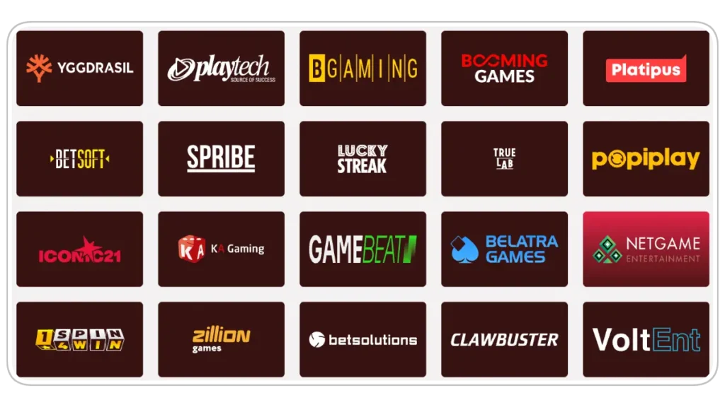 We provide a collection of more than 3,000 spinning reel titles, and we’ve collaborated with 30+ developers to meet the needs of Australians. Within our lobby, you’ll find options from both known and upcoming brands. Some of them are: